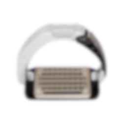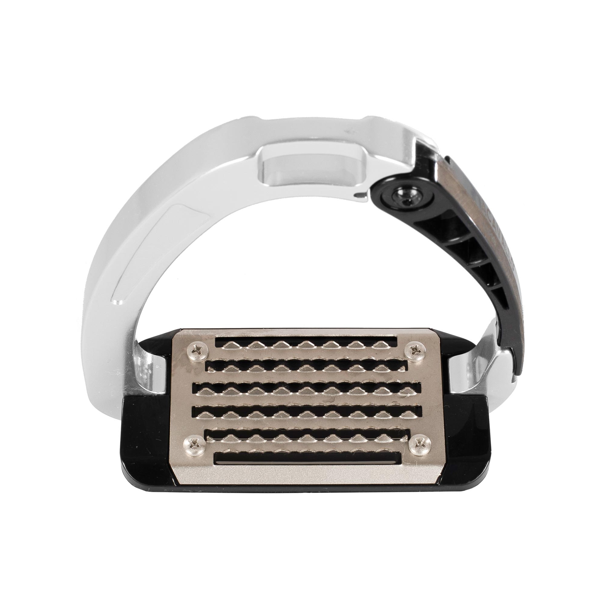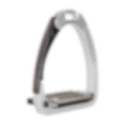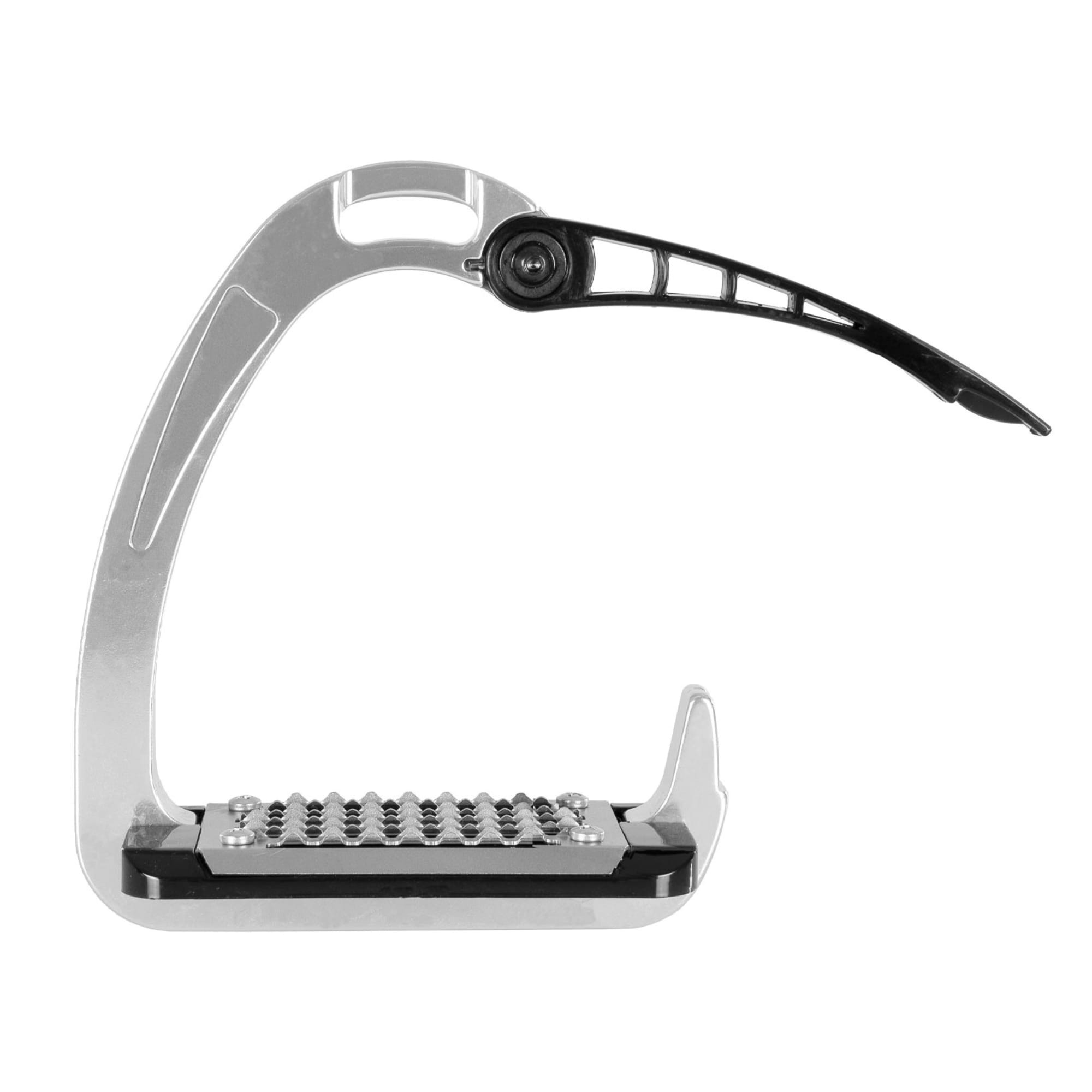 The stirrup is crafted from an advanced combination of anodized aluminum, stainless steel, and flexible polymers. The sturdy aluminum arch ensures stability, while the moving polyamide arm provides flexibility and less rigidity compared to traditional stirrups.
