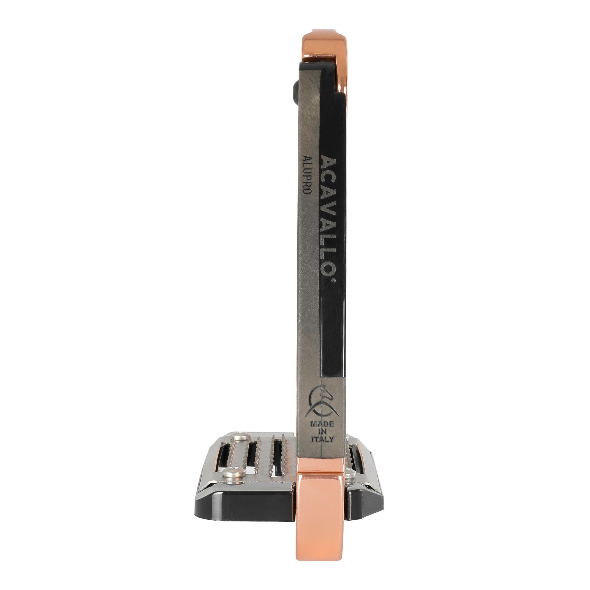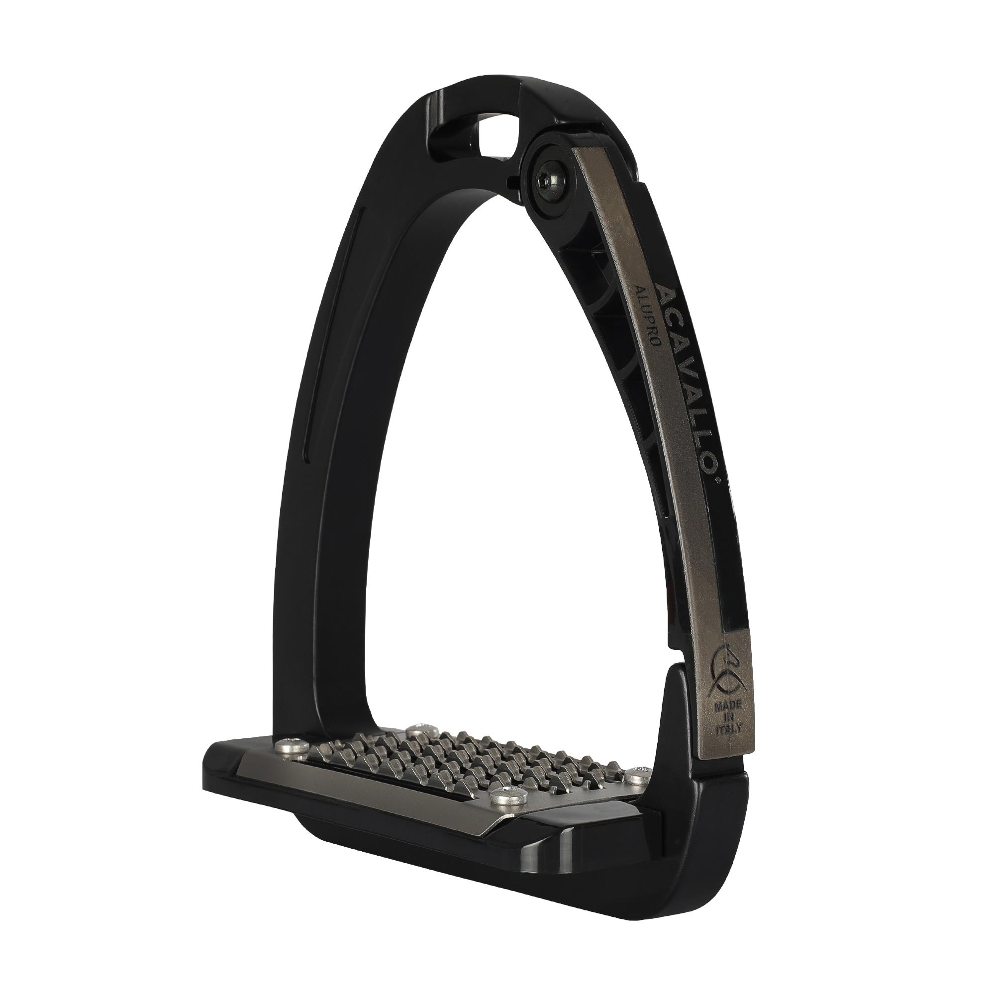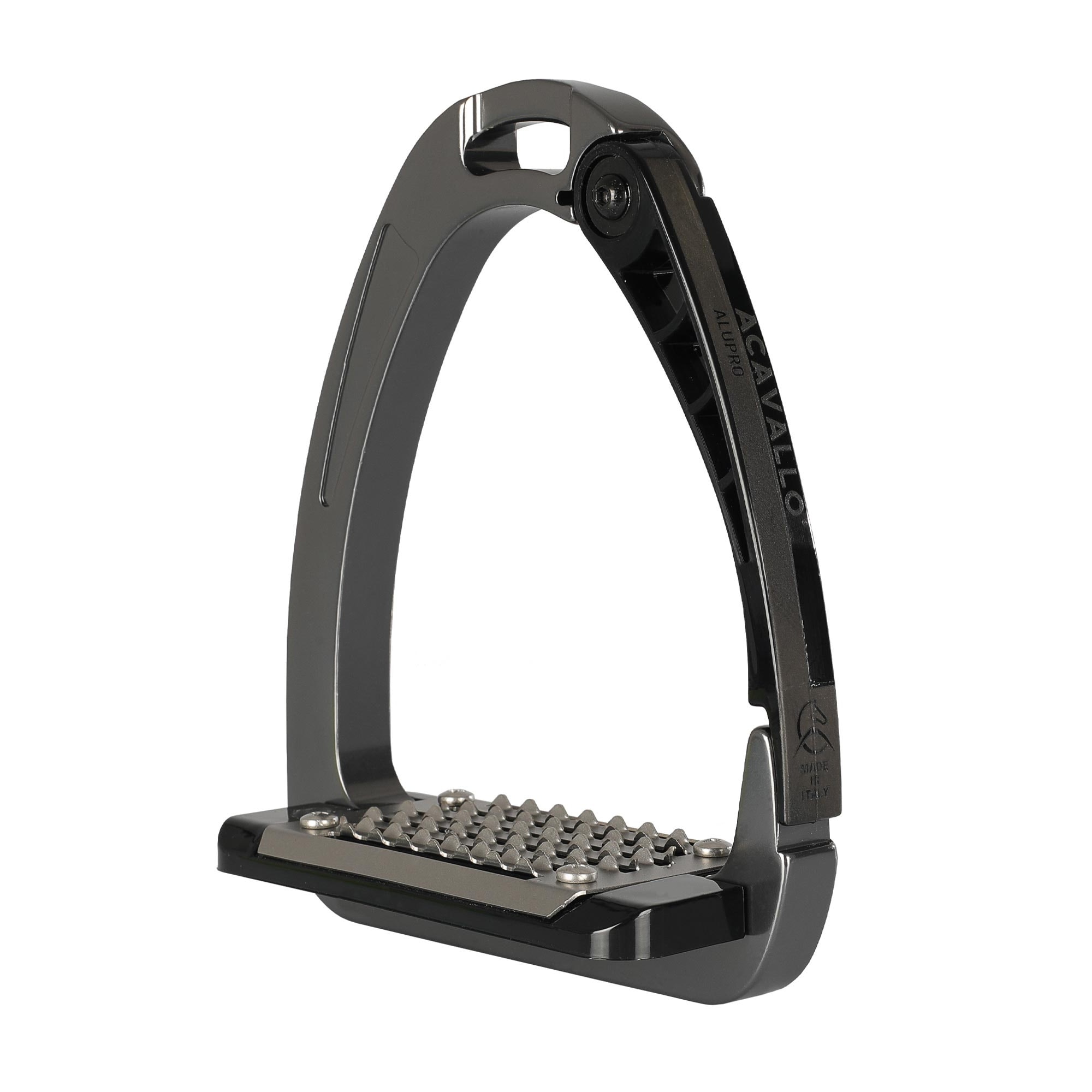 The Acavallo Arena Safety Stirrup is an innovative and highly secure stirrup, designed to provide riders with both safety and comfort. Thanks to its patented side opening at the lower end, the foot is quickly released in case of a fall, reducing the risk of getting caught in the stirrup.