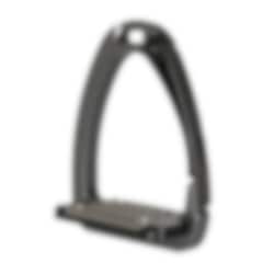 The stirrup is crafted from an advanced combination of anodized aluminum, stainless steel, and flexible polymers. The sturdy aluminum arch ensures stability, while the moving polyamide arm provides flexibility and less rigidity compared to traditional stirrups.