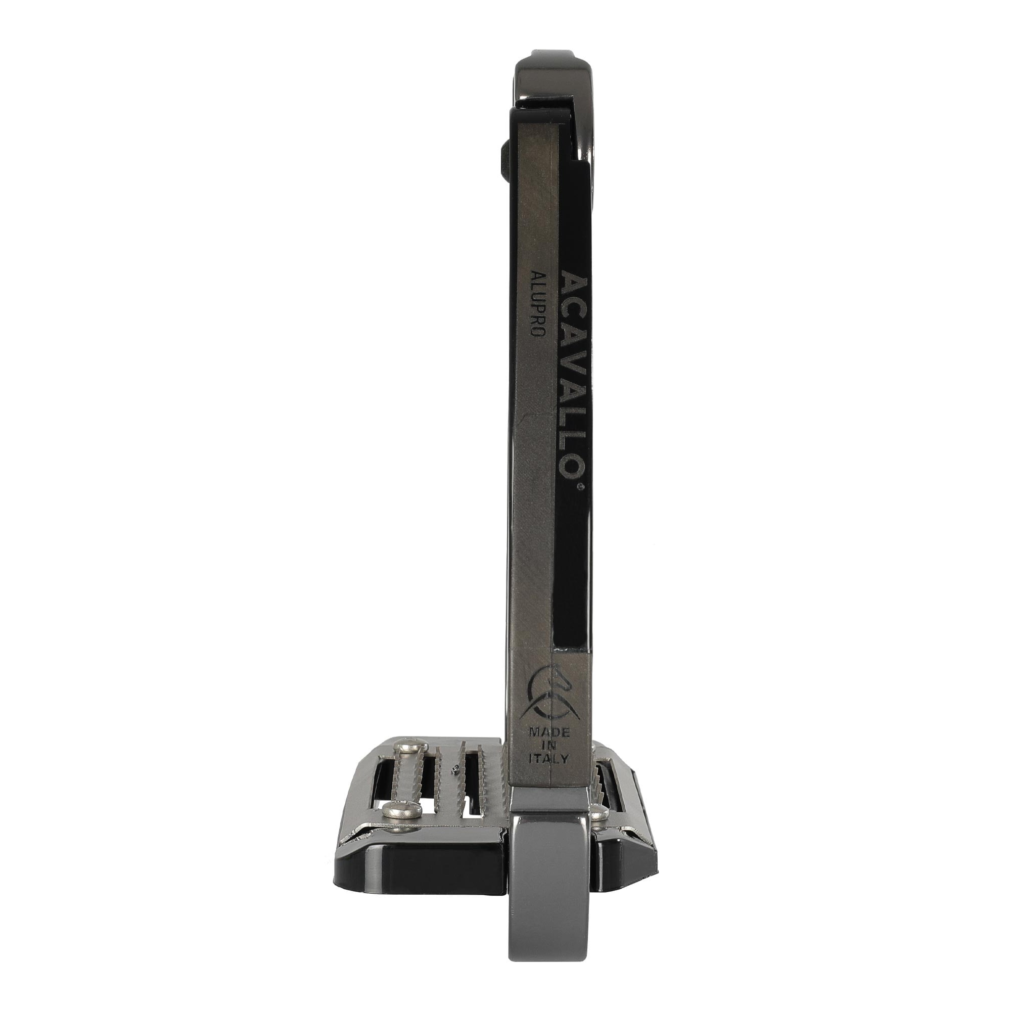 Acavallo Arena Safety Stirrup in titanium with patented side opening for extra security. Lightweight, durable, and equipped with a wide tread that ensures optimal grip in all weather conditions.