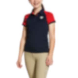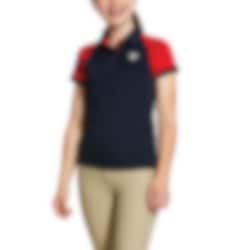 This junior pique from Ariat is a nice and practical polo to wear in the stable and during training. The riding pique keeps you cool, dry and sun protected as it is made in AriatTEK Heat Series Technology, Moisture Movement Technology and Sun Protection Fabric. Junior Team Polo is in navy color with red short sleeves.