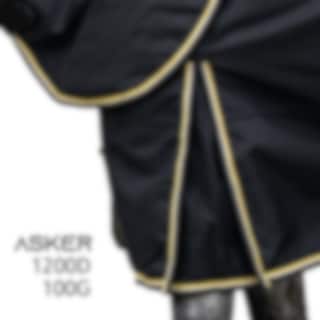 Asker TO Plus 1200D 100g in black is a durable and waterproof turnout rug that comes with a separate neck cover. Made from extra strong 1200 denier fabric, it offers excellent breathability and a comfortable fit.