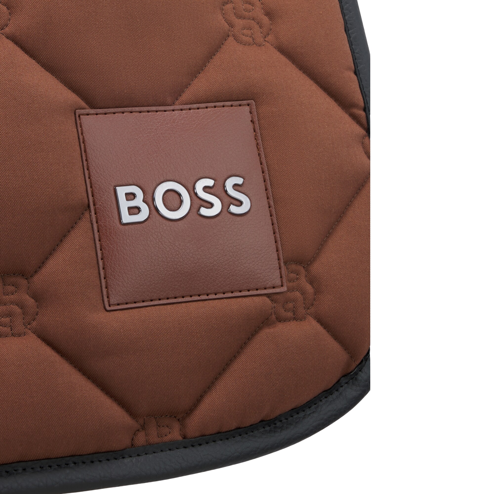 Exclusive details, such as embroidered Double B monograms and a Boss logo patch in synthetic-coated (faux leather) material, create a luxurious and modern look. The synthetic-coated fabric is durable and provides an elegant matte or textured finish.