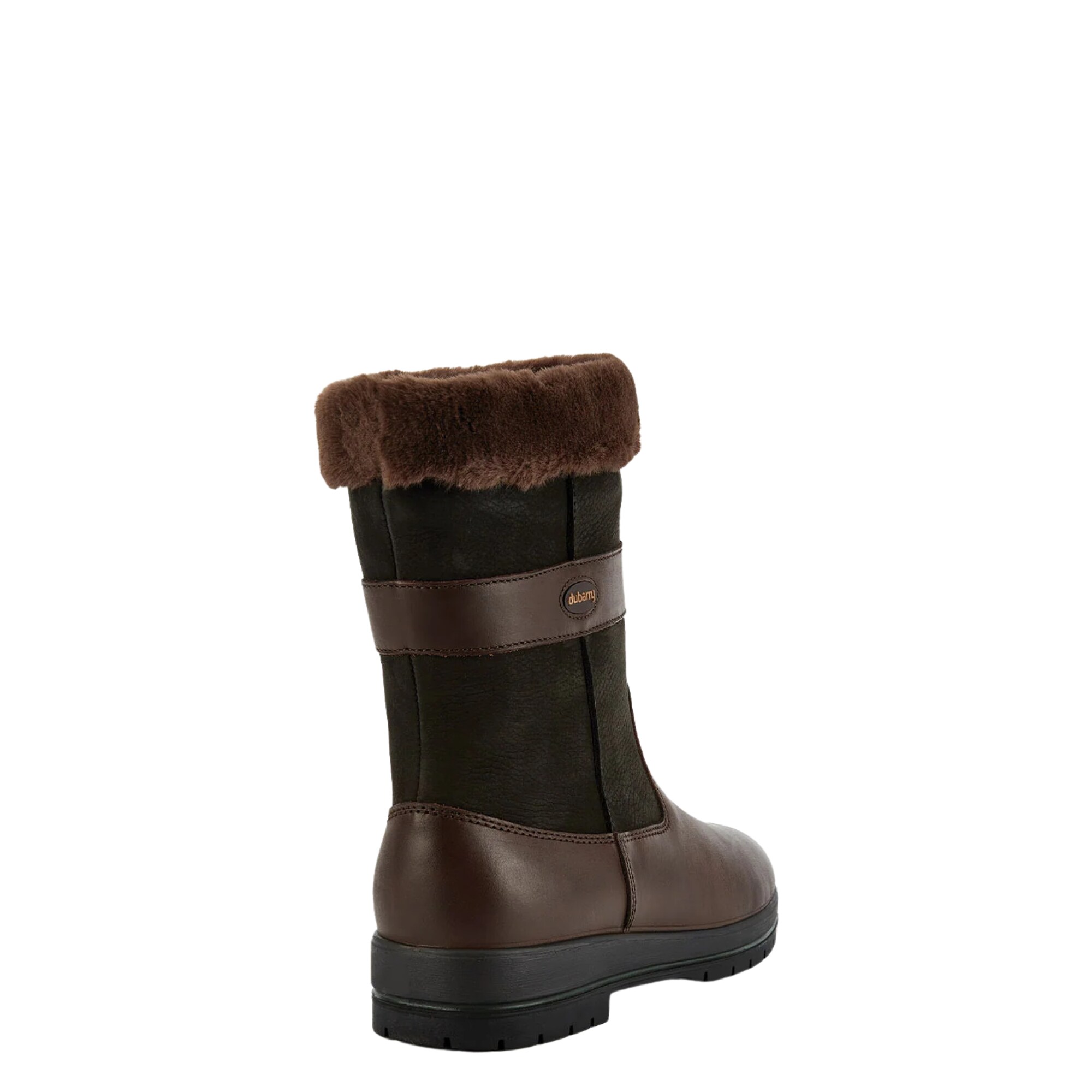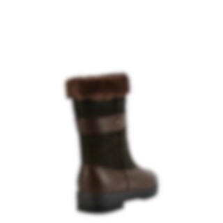 The boot is crafted from Dubarry’s exclusive DryFast–DrySoft™ leather, which is water-resistant and breathable, and is lined with GORE-TEX® and soft, warm faux fur. The faux fur collar provides extra warmth while preventing snow and ice from entering the boot. A thermal, foil-lined footbed ensures optimal insulation and all-day comfort in cold weather. The dual PU/rubber sole is lightweight, provides excellent shock absorption, and offers stable grip.