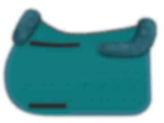 The sheepskin saddle pad and Mattes saddle pads are absolutely top quality. Just this dressage saddle pad is made of teal cotton with certified green-blue sheepskin in the integrated pad that also has Mattes SPINFREE® design. This saddle pad has two piping / spin in azure blue and teal.