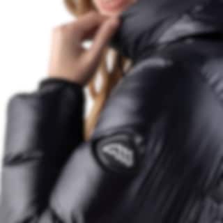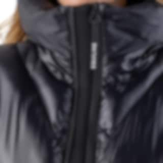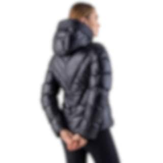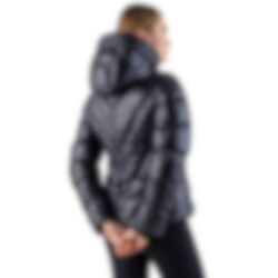 Equiline Coolbomb Glossy is a padded women’s jacket in black, designed for comfort and functionality during cold days. The jacket is padded with Eco-Duvet, made from recycled PET bottles, and provides warmth while being eco-friendly.