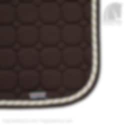 Equiline Octagon Dressage Saddle Pad – Brown with Beige/White/Gold Glitter Piping.
