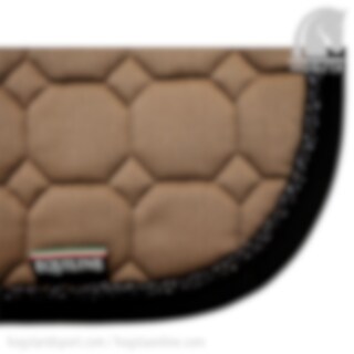 Equiline Octagon Jumping Saddle Pad – Cappuccino with Black Edging and Black Glitter Piping.
