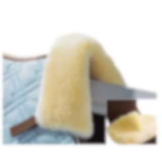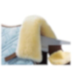 A soft detachable underlay made of lambskin that easily attaches to the straps on the saddle pad. Its ergonomic shape relieves pressure on the horses back whilst offering shock absorption and increased ventilation. The lambskin is folded up and over the front of the saddle pad, creating a decorative border. The lambskin underlay is a simpler but just as effective option to the standard sheepskin saddle pad.