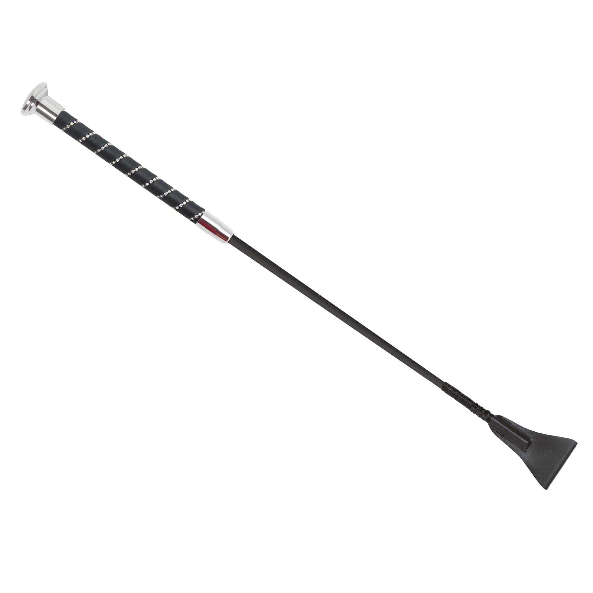 SilkTouch Crystal Jumping Whip has a handle with a superb grip and fine details of lots of sparkling stones in a spiral. The whip is black with metal parts in chrome.