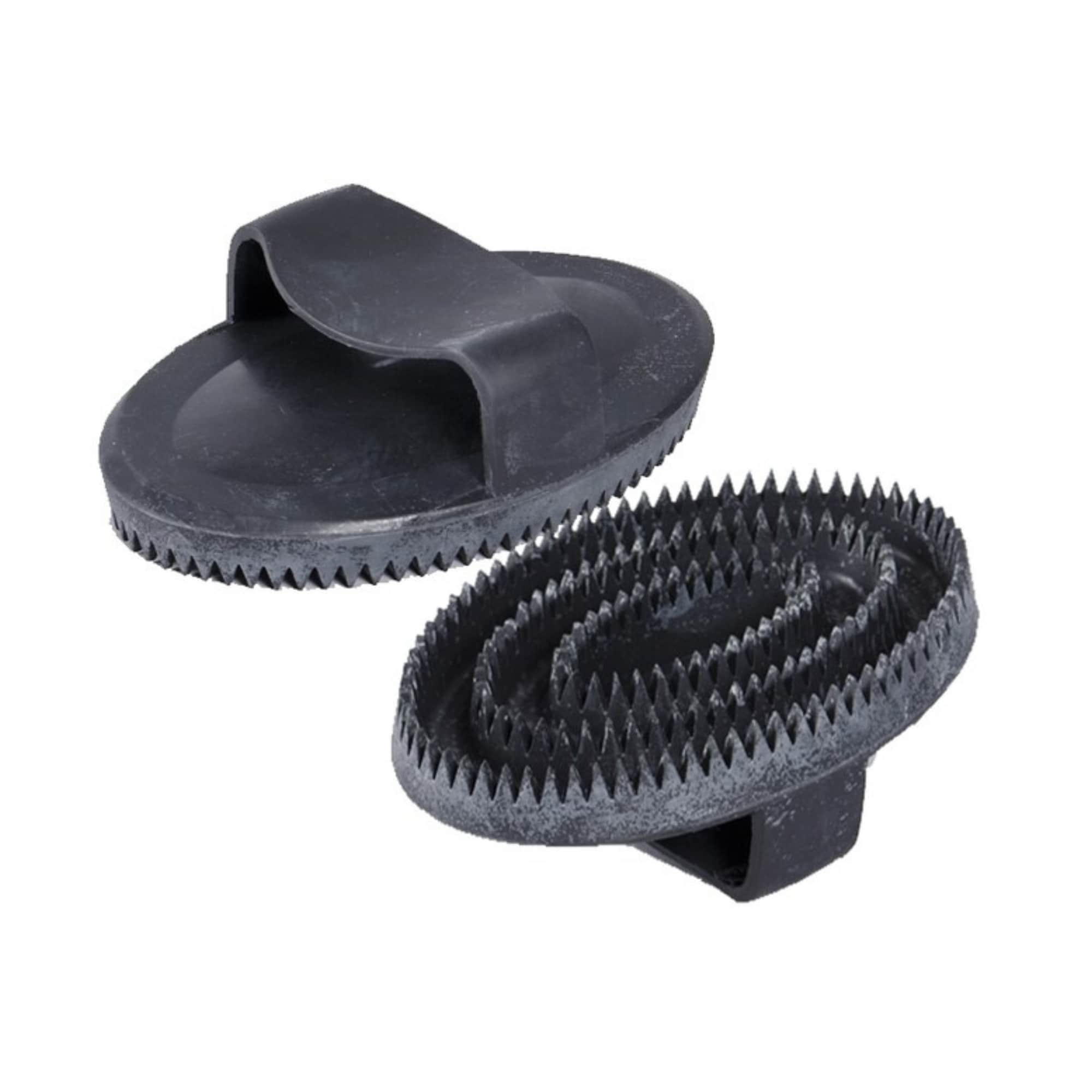 The rubber curry comb can be used both as a scraper for grooming brushes and to remove loose hair and dust during the shedding season.