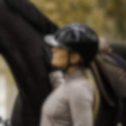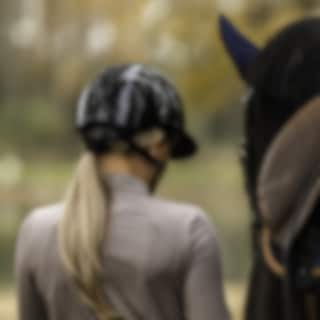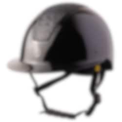 A neat helmet by Hansbo Sport with an implemented Multi-directional Impact Protection System "MIPS". The riding hat features polo screen, six ventilation openings and a chinstrap with three-point fastenings in synthetic leather with quick release and a soft tunnel for maximum comfort. The helmet has a glossy surface with a glitter top and panel details in black.