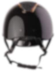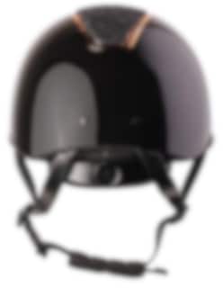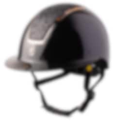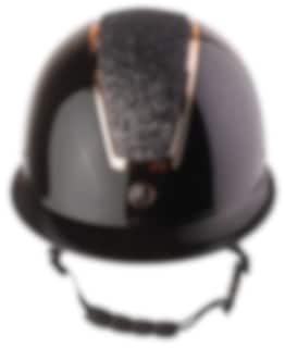 An elegant helmet by Hansbo Sport with an implemented Multi-directional Impact Protection System "MIPS". The riding hat features polo screen, six ventilation openings and a chinstrap with three-point fastenings in synthetic leather with quick release and a soft tunnel for maximum comfort. The helmet has a glossy surface with a glitter top and panel details in rose gold.