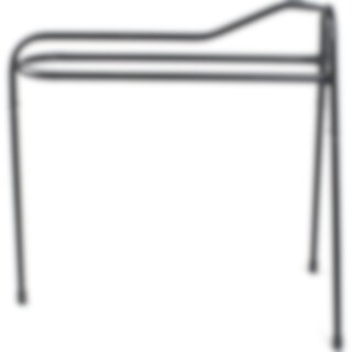 Three-legged saddle horse in black painted metal. A bit smaller in size wich makes it perfect for transporting the saddle in the car or in the horse trailer.