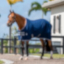 The Amigo® Stable Sheet (0g) is a lightweight, unlined rug that performs equally well in the stable, during transport, or as a cooler after exercise. With its excellent breathability and superior moisture-wicking properties, it keeps your horse dry and comfortable in all situations.
