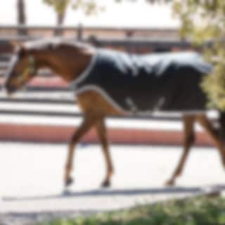 The rug is both waterproof and breathable, protecting the horse from rain while allowing excess heat to escape. The 200 g fill helps keep the back and muscles warm during exercise.