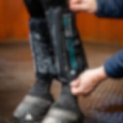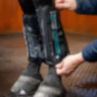 Thanks to their innovative gel bead formulation and panelled design, the cold packs mould smoothly around the horse’s legs for an optimal, contoured fit.