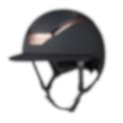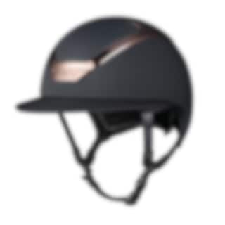 Classic matt riding helmet with sun visor, this riding helmet is a real dream with a black finish and rose gold details.