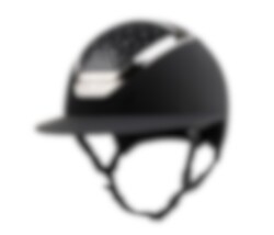 Matt riding helmet with sun visor, the top Passage is designed with authentic Swarovski Crystals.