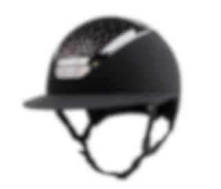 Matt riding helmet with sun visor, the top Passage is designed with authentic Swarovski Crystals.
