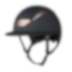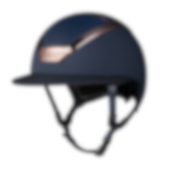 Classic matt riding helmet with sun visor, this riding helmet is a real dream with a navy finish and rose gold details.