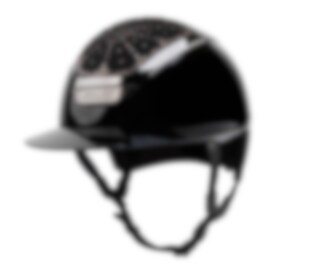 High gloss riding helmet with sun visor, the top Riviera is designed with authentic Swarovski Crystals.