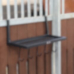 A practical, space-saving storage solution for the stable or competition grounds, the foldable shelf with hanger from Lami-Cell combines multiple functions in one – perfect for organising items such as saddle pads, bridles, or accessories.