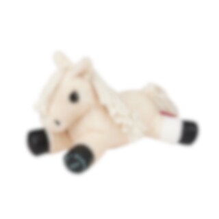 Popcorn is a light yellow, fluffy pony with a plaitable light mane and tail. With round, dark eyes and a relaxed lying-down pose, Popcorn feels just like a little foal companion to take everywhere.