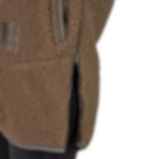 The Pikeur Sherpa fleece jacket is crafted from elastic bouclé yarn, providing excellent heat retention, while the thin, flexible inner lining ensures a comfortable fit. Its relaxed cut and slightly longer length over the thigh make it ideal for both stable wear and everyday use.