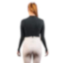 The Alicia Seamless Shirt in grey from Samshield is designed for riders who want to combine style and performance in a lightweight, seamless technical top. The shirt features a discreet, slightly high collar, long sleeves, and no zip, creating a minimalist and functional design. The Samshield blazon with crystal details on the back and crystal silver on the zip tab adds a subtle, luxurious touch. Its seamless structure ensures maximum comfort and prevents chafing during sports and riding.