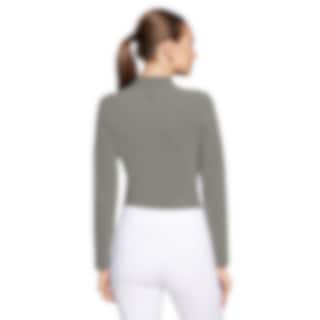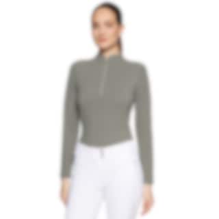 Brunella Training Top from Samshield in Sauge is an elegant long-sleeve riding shirt with a stand-up collar and half-zip closure. Made from breathable, stretchy technical fabric and adorned with flattering Swarovski® details.