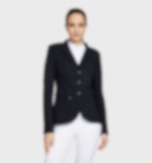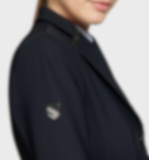 This competition jacket from Samshield is incredibly elegant and also very comfortable thanks to the stretchy fabric. The riding jacket has fine sparkling details with black Swarovski® stones on the collar and on the back. The swarovski material is called Crystal Fabric and can also be put on your riding helmet from Samshield if you want them to match.