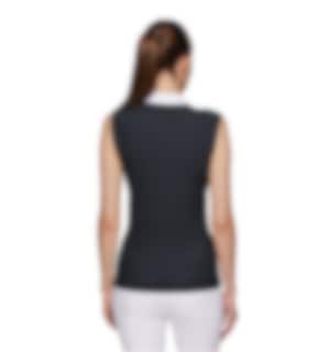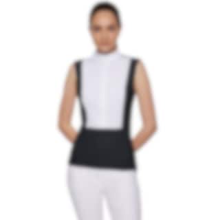 Yasmina is a sleeveless competition top perfect for competitions, or when you want to look extra stylish during training. It is made in a very comfortable material that has high stretch, breathes and is quick drying. At the front there is an invisible zipper, and the collar is in white with a Samshield blazon in Swarovski crystals. The back of the competition shirt is perforated, which breaks off beautifully towards the front.