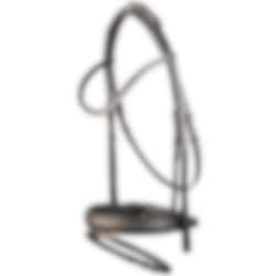 This is a black bridle in the model Florenz, an elegant and functional design that introduced the innovative crownpiece with buckles, making bit adjustments easier. The bridle also features Otto Schumacher's anatomically shaped 4 cm Comfort XS noseband with "Feel Good" padding, meaning there are no inner seams. The noseband measures 4 cm at its widest point and tapers evenly toward the sides where the horse has the least space near the bit.