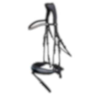 The rolled design gives the bridle a soft and elegant appearance with a classic dressage character, while the curved browband with large crystals adds an exclusive and sophisticated detail.
