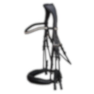 Ergonomic noseband and headpiece. The extra wide crank noseband on the Venice double bridle is tapered around the cheekbones to avoid the risk of pinching between the bit and noseband. The softly padded headpiece features a tapered interconnection with the cheekpieces whilst the shape of the padding allows more freedom for the ears and reduces the risk of pressure on the poll area. Double buckle style throat latch. A beautiful, slightly curved and well-fitting browband, embellished with a row of large sparkly crystals. NB! Reins not included.