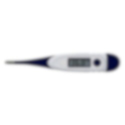 A fast, digital thermometer with a flexible top. The grip-friendly thermometer shows the maximum temperature after 10 seconds and saves the last measured temperature.