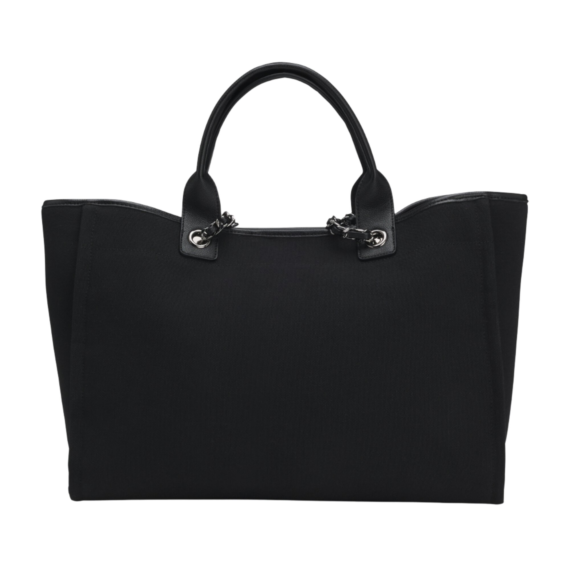 The bag is made from durable 100% canvas with a PU coating, providing a hard-wearing surface that resists everyday wear while maintaining its premium look and feel. The stylish shoulder straps with an interwoven chain detail add a sophisticated touch.