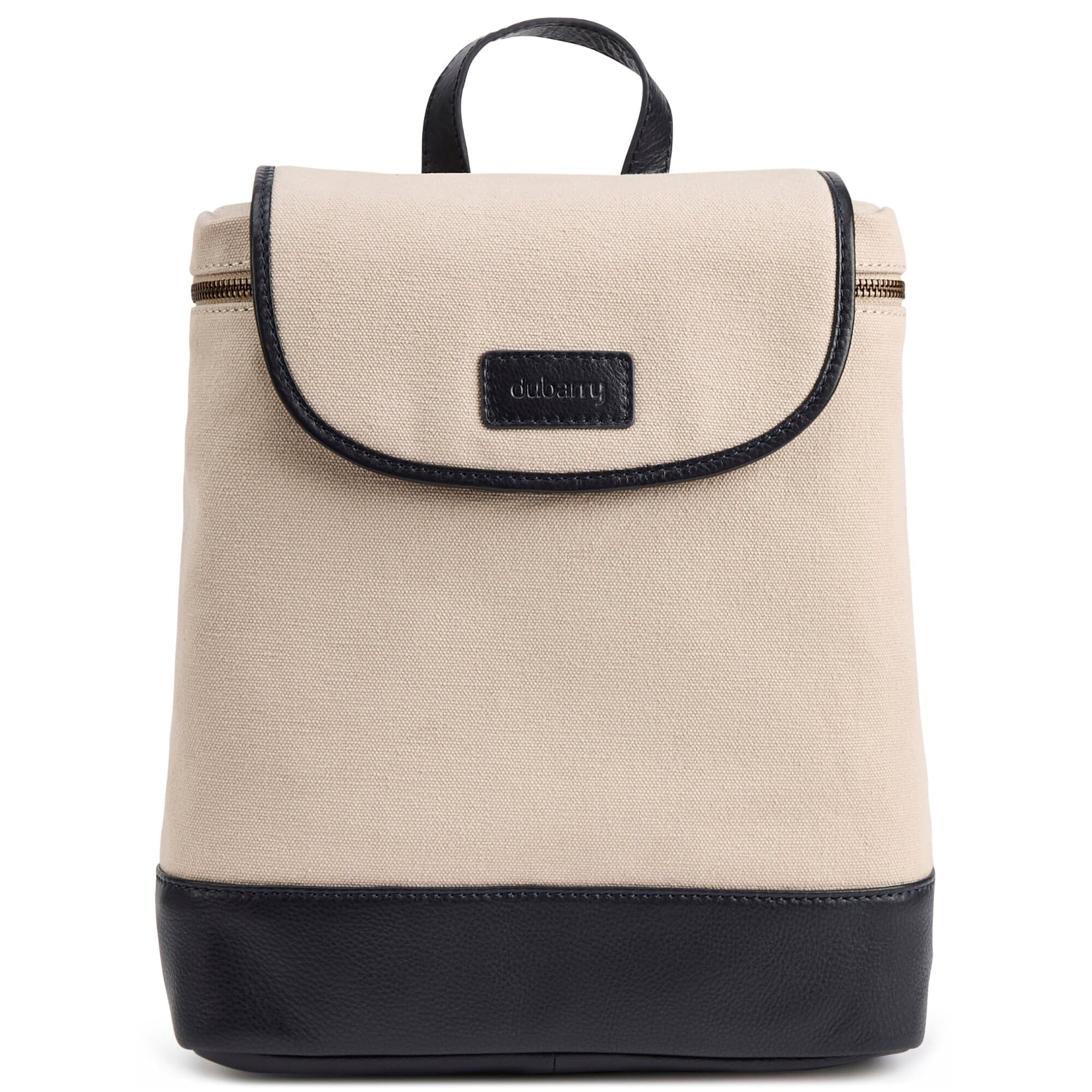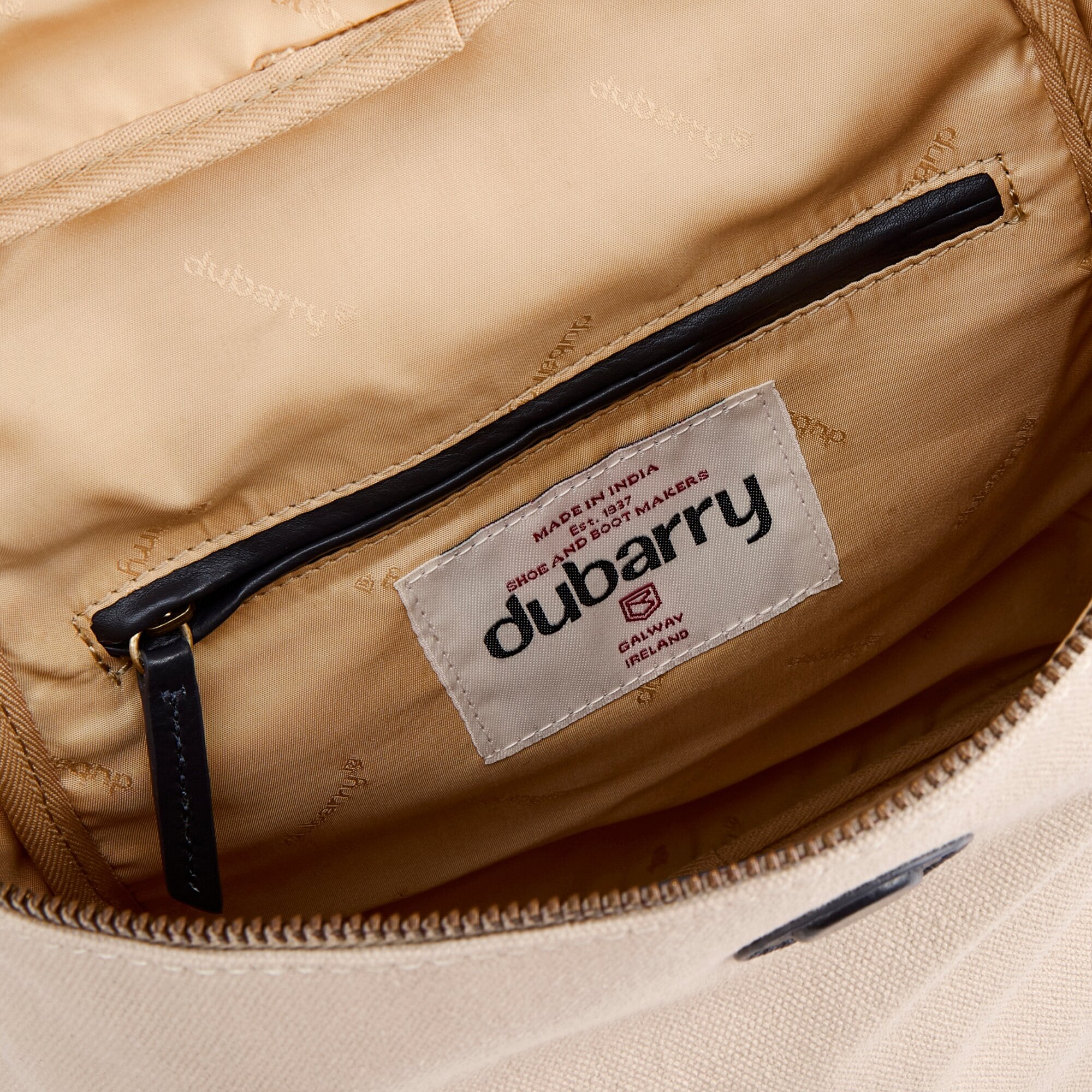 Dubarry Rosegreen is a stylish and practical backpack with a classic design made from durable canvas in a natural beige tone and complemented with exclusive navy leather details.