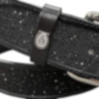 The belt is crafted from Otto Schumacher's premium-quality leather and measures 85 cm in length. It features sparkling fabric crystals in the color Jet and a sleek silver-colored buckle, adding an exclusive touch. The belt has a width of 40 mm, making it a striking yet versatile accessory.
