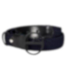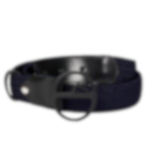 The belt from Vestrum is a navy blue braided belt with high-quality black leather details, creating a sophisticated and timeless look. The black details, including the sturdy metal buckle, add an elegant contrast and enhance the modern expression.