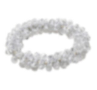 Nathalie Scrunchie has crystal beads and metallic elastic. It is small, but fits the donut hairstyle perfect!