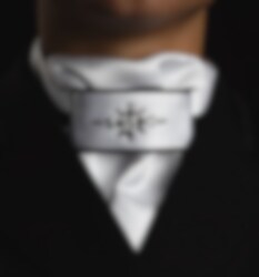 This luxurious stock tie is decorated with contrasting lines in silver, with a graceful pattern of rhinestones in different sizes and colors on the front of the stock tie, these match the color of the contrast details.