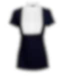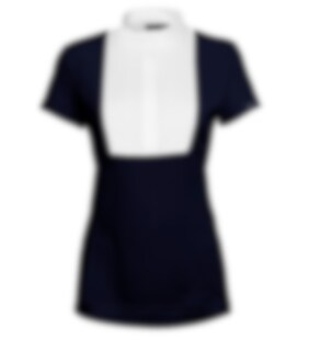 The competition shirt is made in a nice navy blue color with white collar and chest.