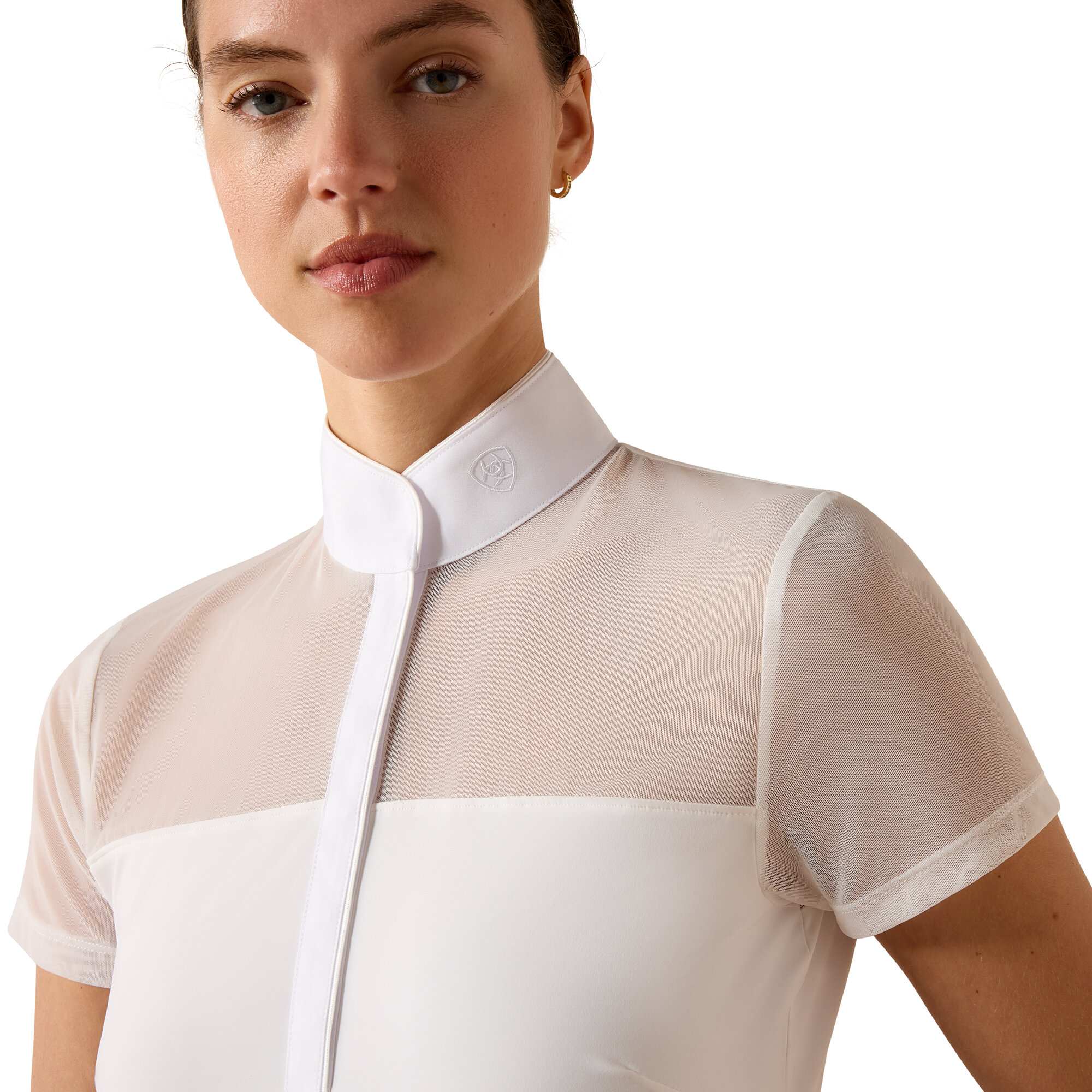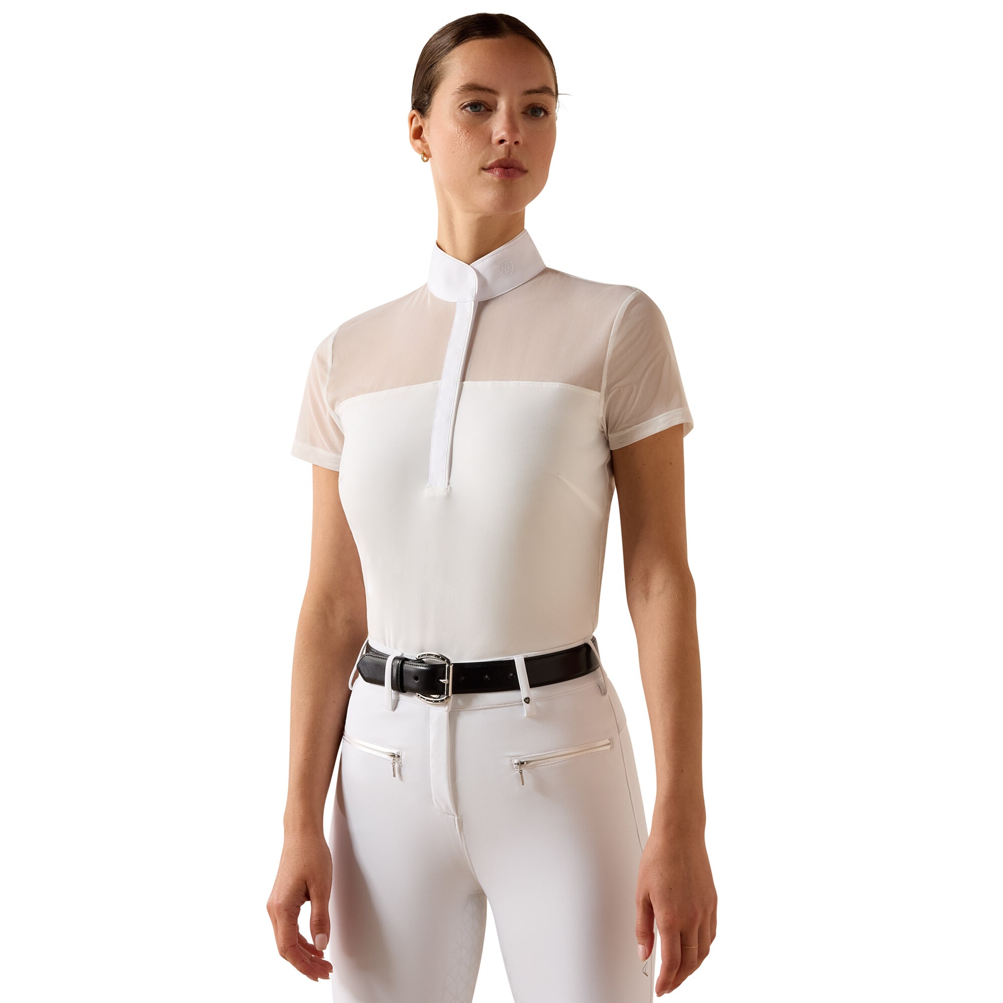 The Ariat Allure Show Shirt is made from a soft and flexible nylon/elastane blend, offering a close-to-body fit and full freedom of movement. The discreet mesh panels across the yoke and sleeves provide enhanced ventilation and create an elegant, lightweight look. The collar and placket are made from stain-resistant poplin fabric, making the shirt both practical and easy to care for.