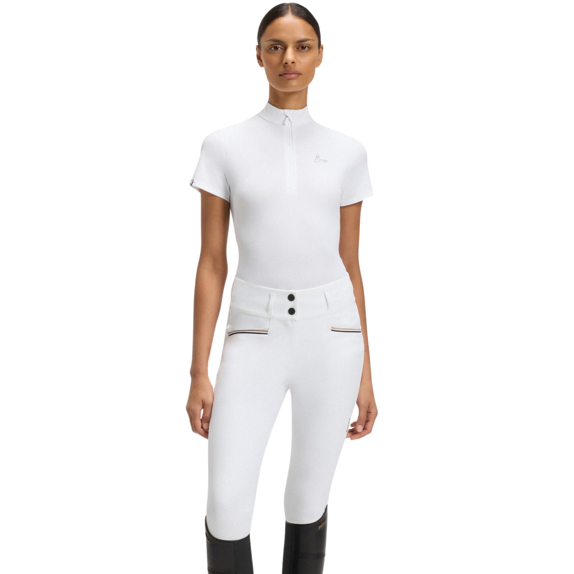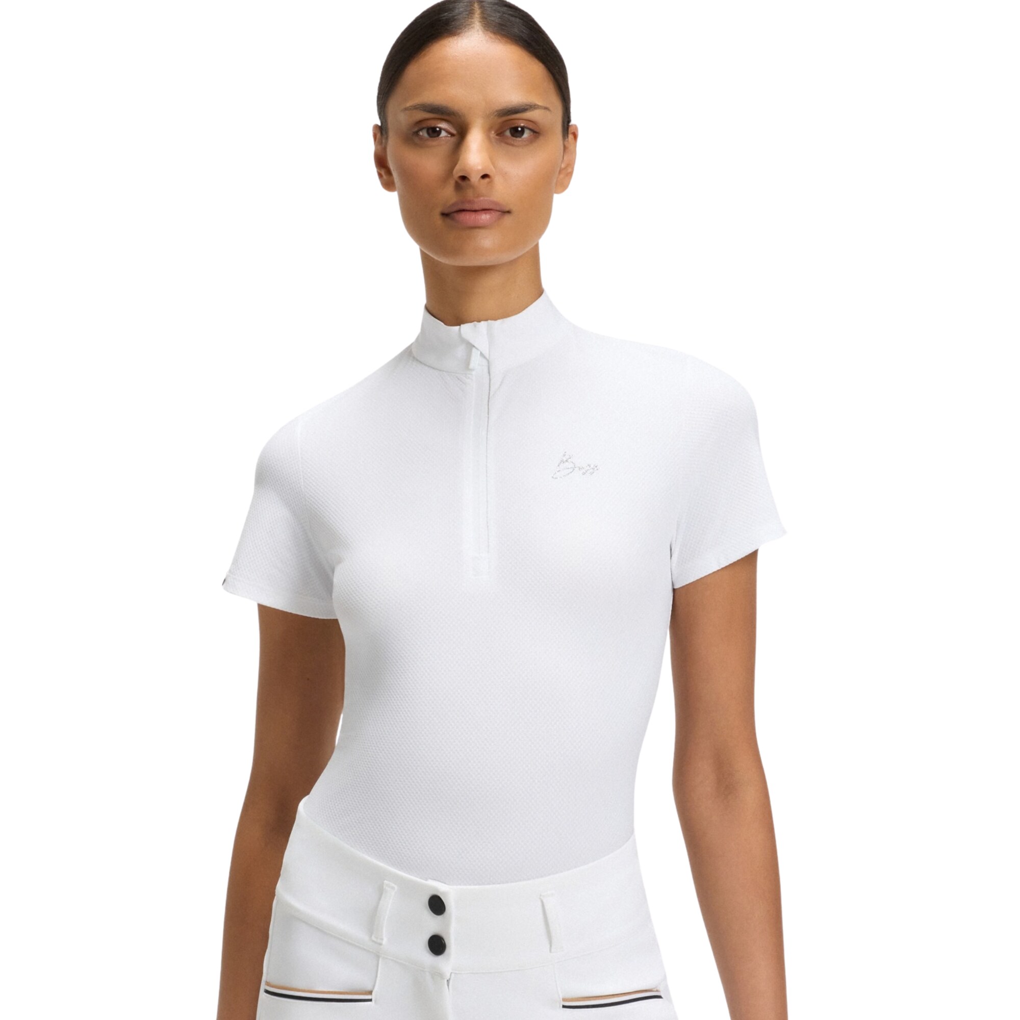 Maira is an elegant and functional show shirt from Boss Equestrian made from a technical, elastic and breathable fabric. The lightweight and quick-drying material features a sun protection factor to help protect the skin during long days outdoors. The practical front zipper makes it easy to put on and take off, while also allowing you to adjust the opening as needed.