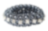 Elegant hair scrunchy with hidden swirled rubber bands that make it look like a beautiful bracelet. This hair scrunchy with pearls also have a number of silver stones around. Very fancy and perfect for party or competition.