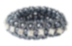 Elegant scrunchie with hidden interlaced rubber bands which makes it look like a beautiful bracelet. This scrunchie with pearls also has a variety of silver stones around. Very fancy and perfect for parties or competitions.