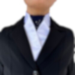 Simple stock tie in satin, with navy blue center part. Other colors are order goods.