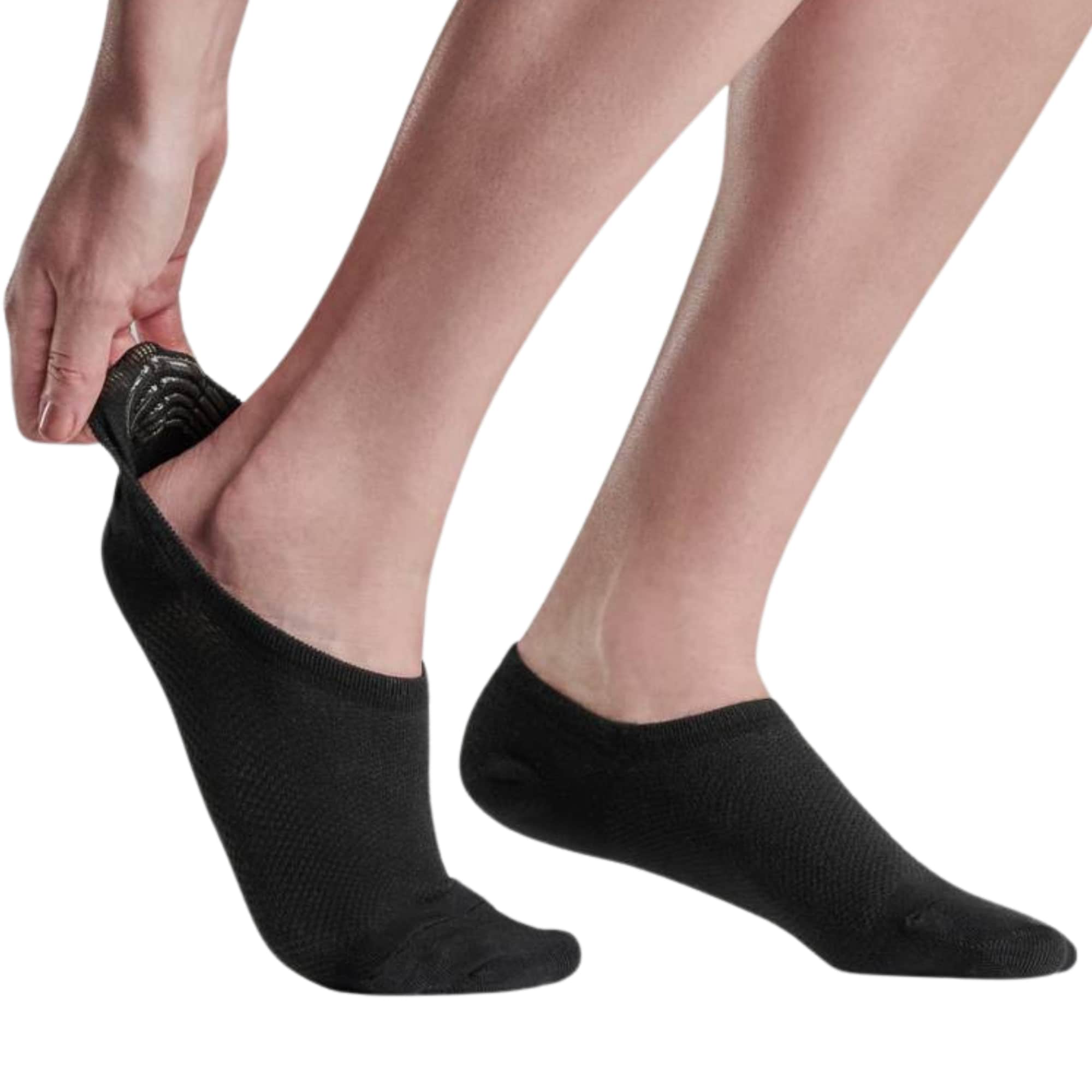 A ventilating mesh panel across the top of the foot provides extra airflow and helps keep your feet fresh for longer. A discreet silicone grip at the heel ensures the socks stay securely in place without slipping down.